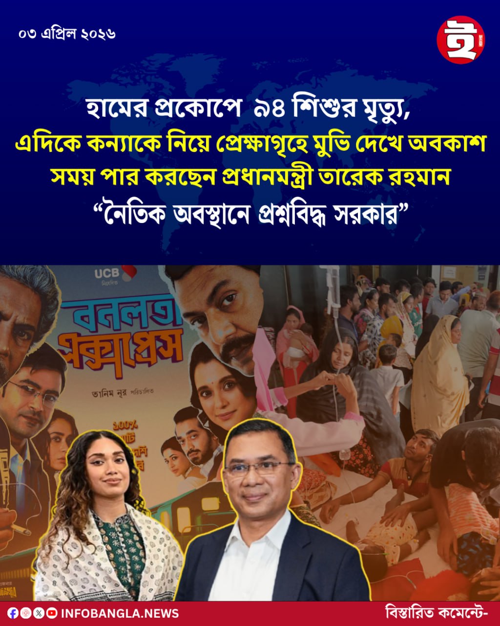 হামের প্রকোপে  ৯৪ শিশুর মৃত্যু,এদিকে কন্যাকে নিয়ে প্রেক্ষাগৃহে মুভি দেখে অবকাশসময় পার করছেন প্রধানমন্ত্রী তারেক রহমান“নৈতিক অবস্থানে প্রশ্নবিদ্ধ সরকার”