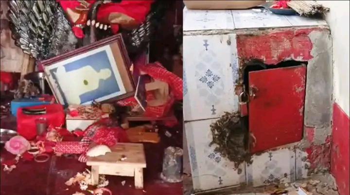 • বিগ্রহ অবমাননা: মা মগদ্বেশ্বরীর বিগ্রহের হাত, পা এবং জিহ্বা ভেঙে গুঁড়িয়ে দেয় দুর্বৃত্তরা।