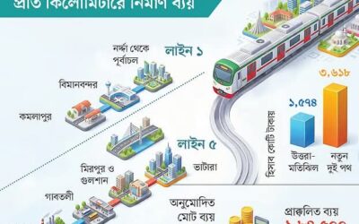 নিজস্ব প্রতিবেদক | ঢাকা রাজধানীতে বাস্তবায়নের অপেক্ষায় থাকা নতুন দুটি মেট্রোরেল প্রকল্পের নির্মাণ ব্যয় আকাশচুম্বী হয়ে দাঁড়িয়েছে। উত্তরা থেকে মতিঝিল পর্যন্ত চলমান মেট্রোরেল (লাইন-৬) নির্মাণে প্রতি কিলোমিটারে যেখানে ব্যয় হয়েছে প্রায় ১ হাজার ৫৭৪ কোটি টাকা, সেখানে নতুন দুই পথে এই খরচ বেড়ে দাঁড়াচ্ছে কিলোমিটারে ৩ হাজার ৬১৮ কোটি টাকা। অর্থাৎ, আগের তুলনায় কিলোমিটার প্রতি…